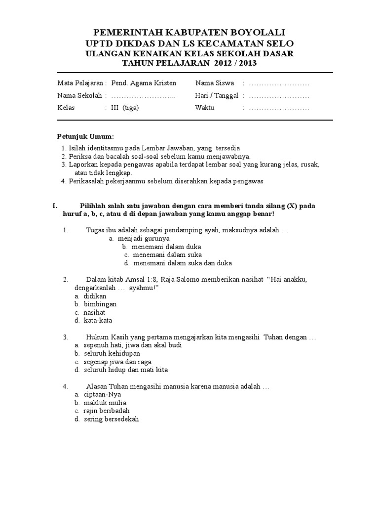 Soal Ujian Semester Genap Kls 7 Agama Kristen Jawabanku Id from imgv2-2-f.scribdassets.com Soal ulangan agama kristen kelas 3 semester 2. Maybe you would like to learn more about one of these? We did not find results for: Check spelling or type a new query.