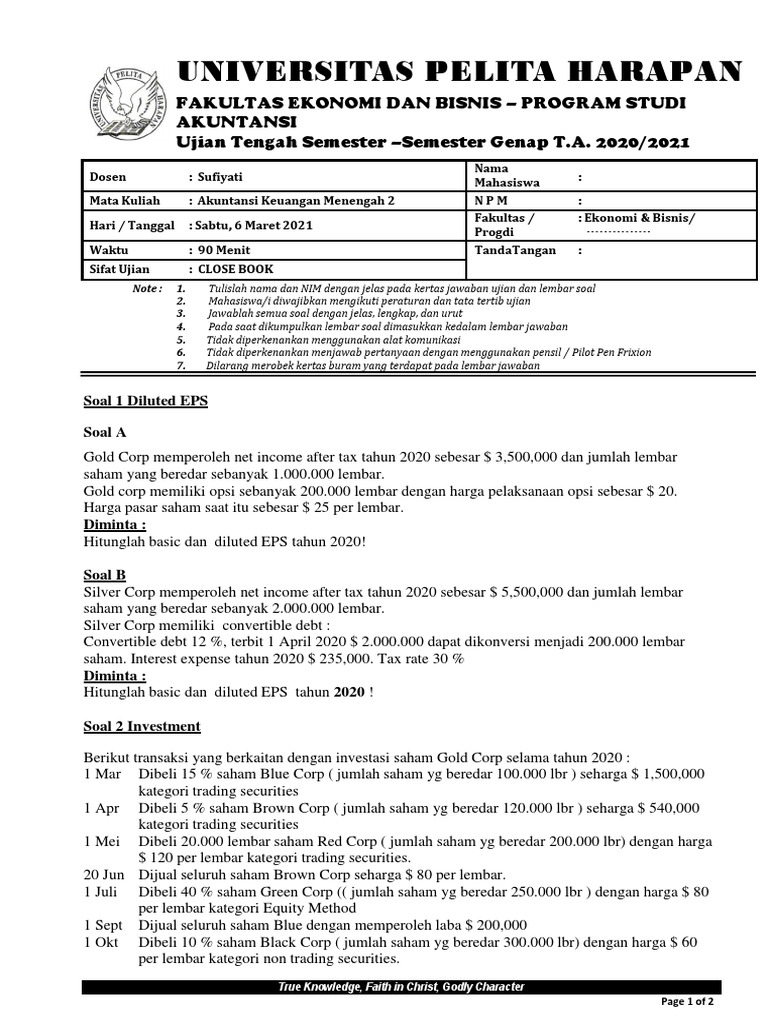 B eps = 200.000.000/50.000 = 4.000 pe ratio = harga per lembar saham / laba per lembar saham = 35.000/4.000 = 8,75 ~ 8,8 kali 5. Akuntansi keuangan menengah berbasis psak buku 2 salemba. Soal ujian ut universitas terbuka akuntansi disertai kunci. Pada minggu terakhir maret 2016 yang lalu sebanyak 40 soal. Berikut ini adalah kumpulan berkas file guru tentang contoh soal akm yang bisa anda unduh secara gratis dengan menekan tombol download.